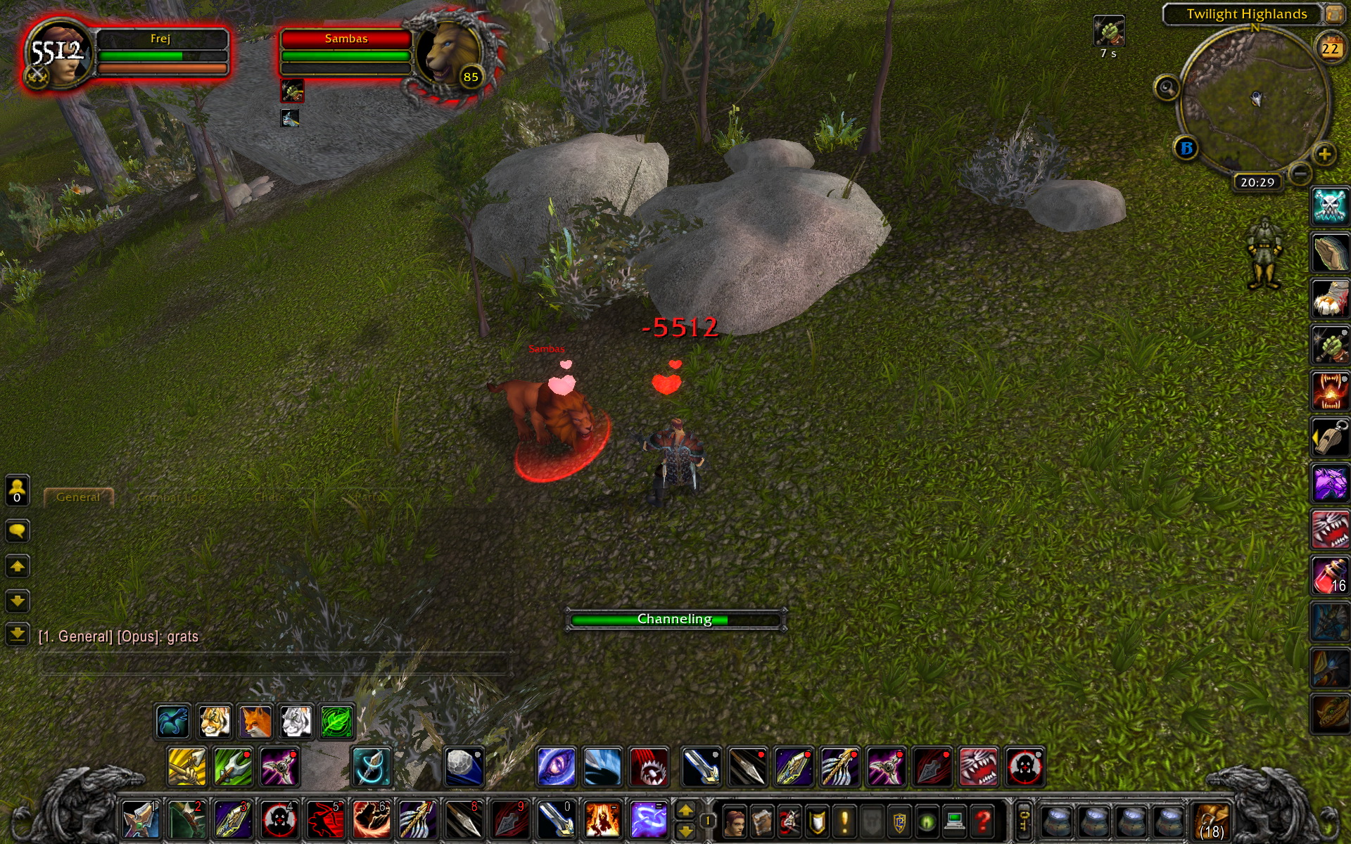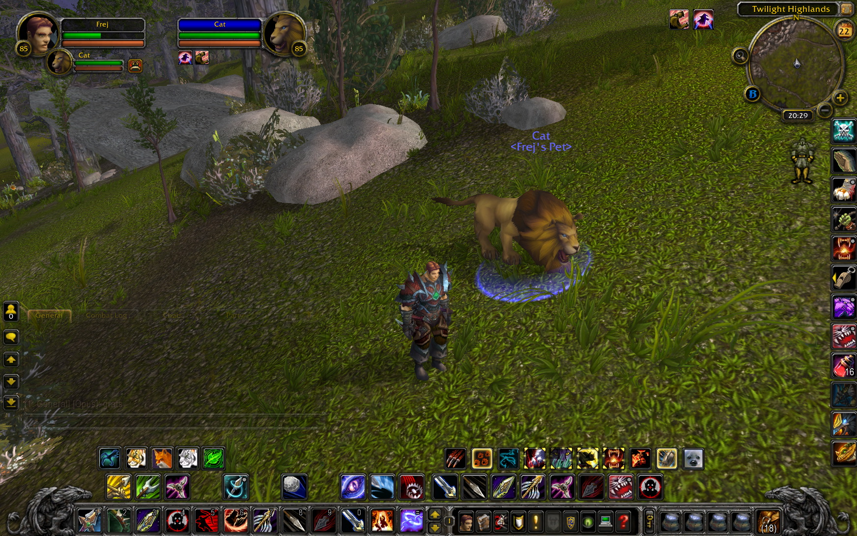 Wandering the Twilight Highlands is a rare spawn level 85 lion called Sambas. He uses the new lion model that the Alliance guild mount and several lions in Uldum use (which is why I thought they might place a tameable one in Uldum). He's very pretty, even though it does look like he just had a perm :D