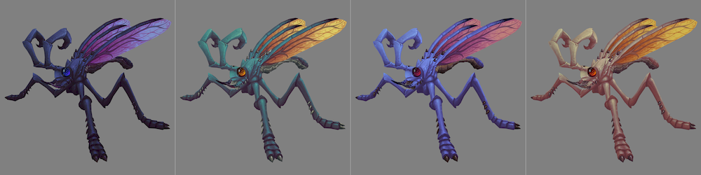 On a hunch I checked the skitterfly model, which is used for arachnophobia mode for swarmites (flying Nerubian beasts). And yes, there are 4 more 'Nerubian-style' colours in there as well!