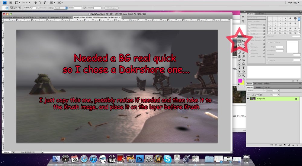Now I needed a BG to give him a setting so I found this: Using that rectangle marquee tool I just copied and pasted this image in the layer under Krush. That way its behind him not covering him.