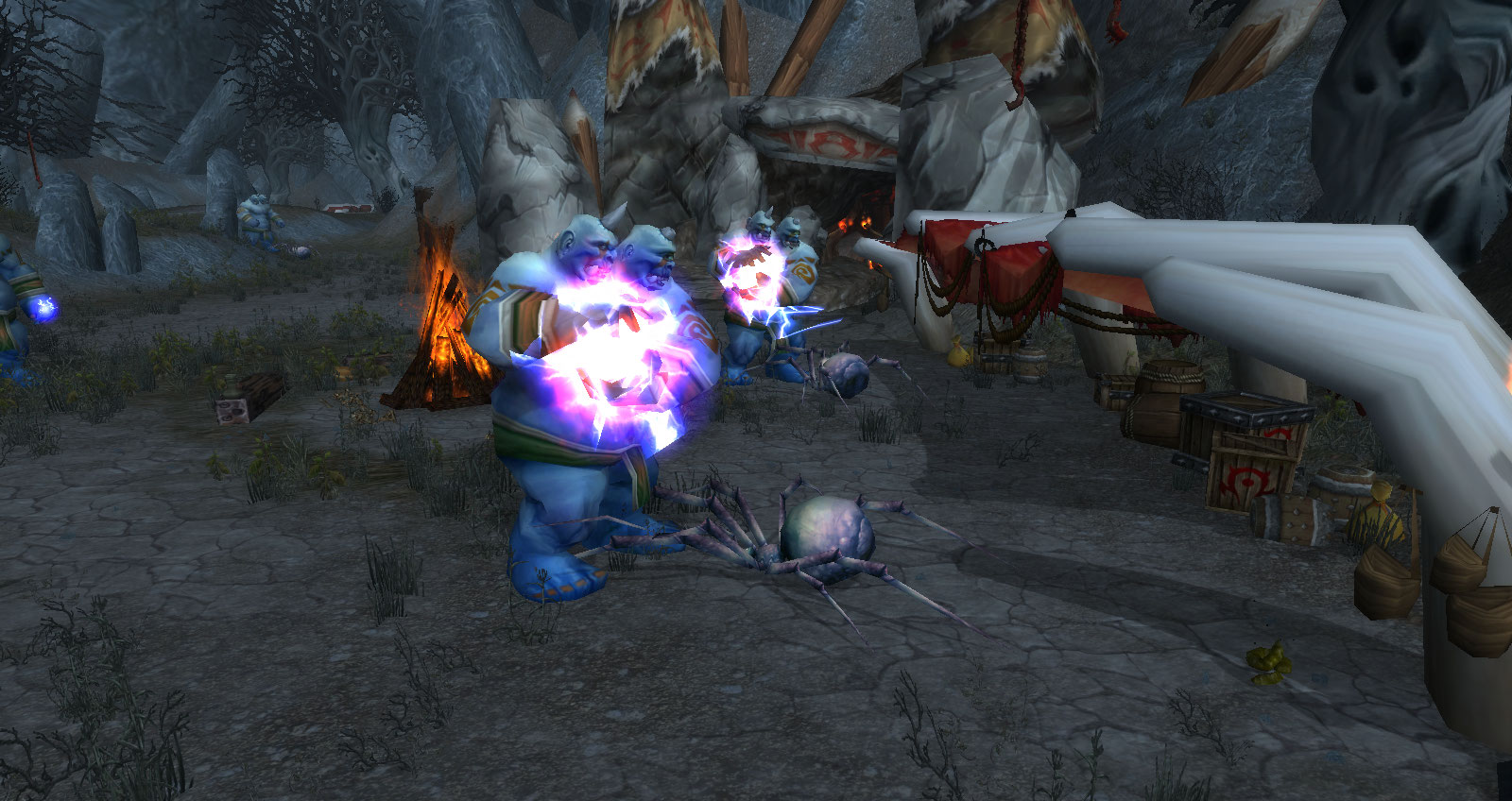 In Deadwind Pass there are now spiders called Deadwind Widows, and they have the fantastic behaviour of hanging upside down from the stone arches over the road. I just love them! Such a great atmospheric addition to the area. I only found them as I was flying overhead today and saw one skittering across an arch, then discovered the sneaky ones lurking underneath.