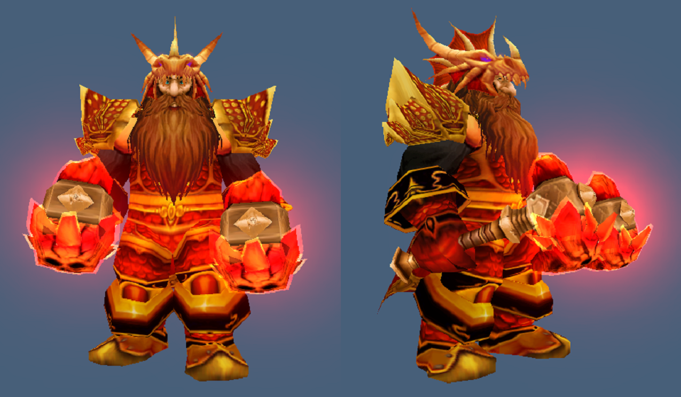 - One Handed Maces: Bloodskull Destroyer have the same graphic as the Swiftsteel Bludgeon, but is also bigger in size. Still, it's easier to get than the Swiftsteel Bludgeon and Syphon of Nathrezim (both drop in Black Temple). Runic Hammer is another mace with different graphics that might fit well with this set. Finally, Lavaforged Warhammer, Drakefist Hammer, Dragonmaw, and Dragonstrike all fit this set pretty well, but they are supposedly no longer obtainable because they were part of the "Mace Specialization" for Blacksmiths, and were removed when Blacksmithing specialties were taken out of the game.