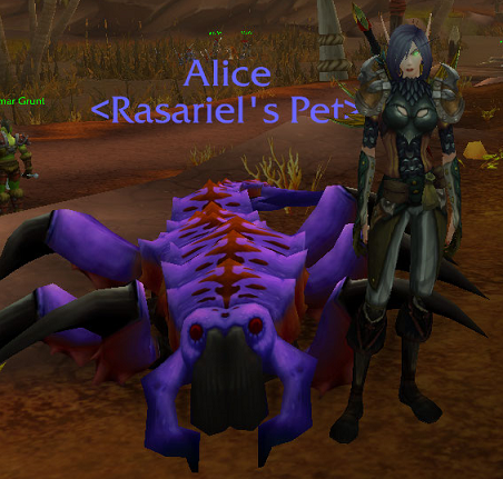 Then I had to go out and tame one of the new silithid models. I'm really fond of the plain purple one, and this tame is particularly unique because it marks Veph's very first female pet. For some reason she has always had an all-male stable, but this one felt decidedly female. I'm still waiting for the perfect name to come to me, but I'm sure it will eventually!