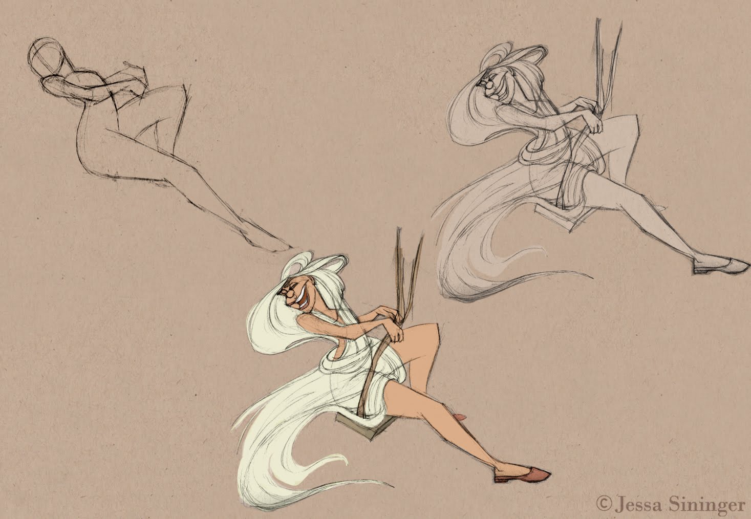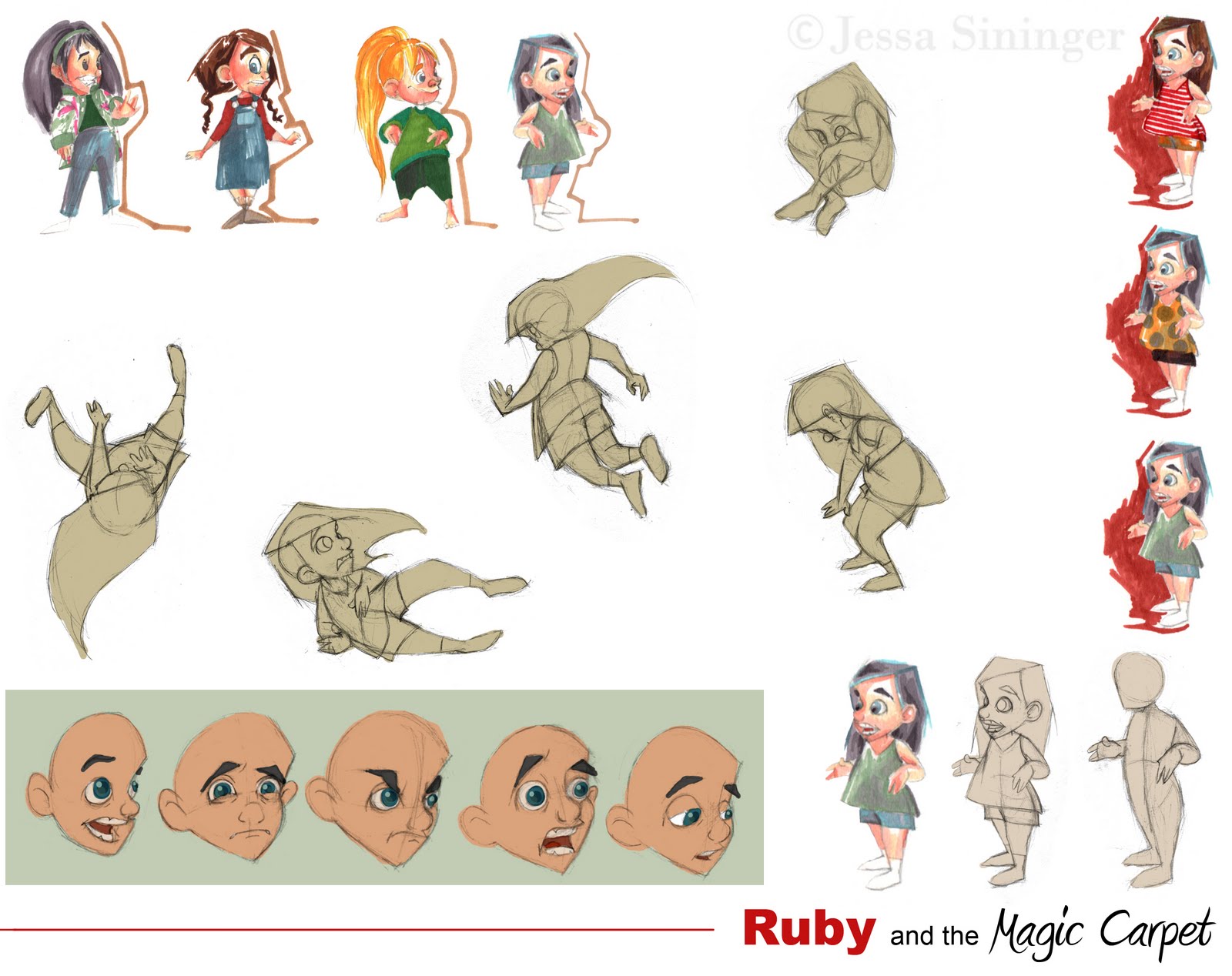 Even though basic shapes are useful to draw realistic things,what I said is true that knowing basic fundamentals of body structure will trickle down into even simple looking artwork. The first human one I shared shows very simple shapes making a very cartoony human. That art and the following comes from Jessa Sininger's art blog. Here you can see the sketchy lines used to make up the uncolored figures: http://4.bp.blogspot.com/_gVZcK1cJR2I/S ... esigns.jpg