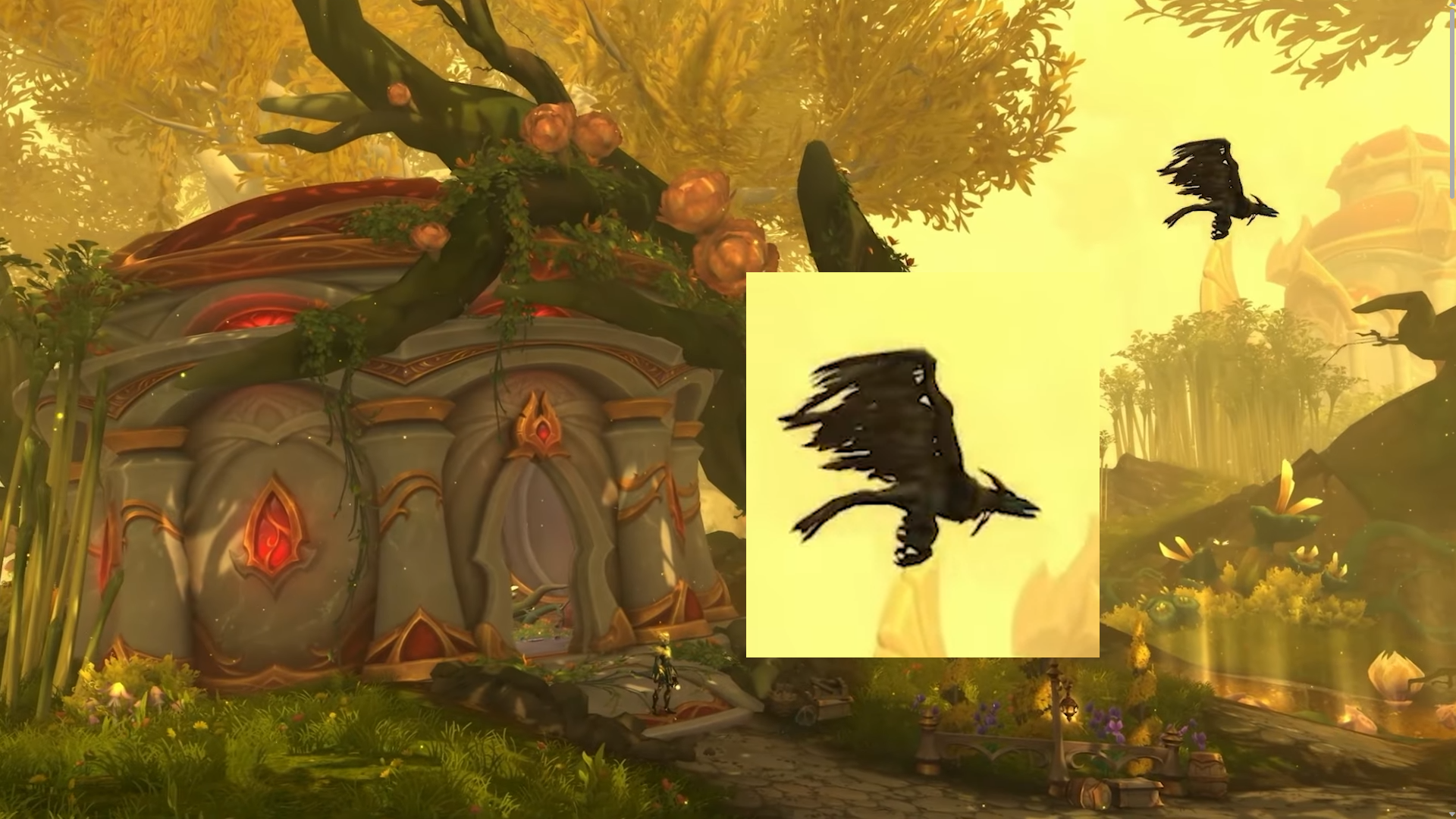 Wait, that raven is in the Amani zone, and the developer panel today showed a very similar bird. I know my screenshot is shoddy, what with it being from a youtube clip that wasn't even showing the bird in good detail, but if you look at the beaks, there's a similar shape. As cool as a black updated dragonhawk would be, I think it's an Amani bird (eagle, perhaps?) that's used as the flight master mount.